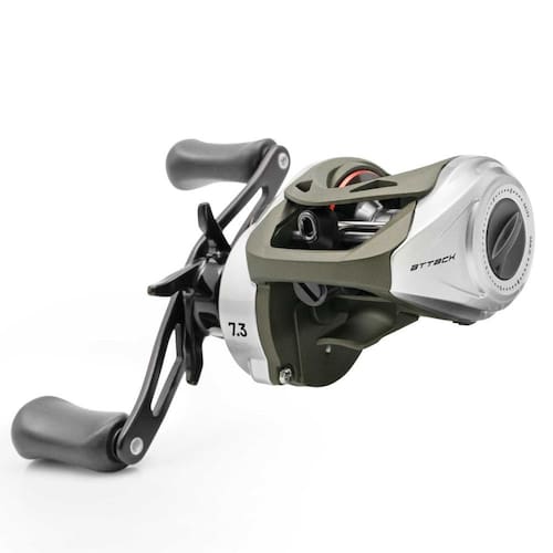 A carretilha Attack possui design atual e moderno e é perfeita para as pescarias com iscas artificiais. Ela possui características incríveis como o pinhão apoiado por rolamentos e o freio com disco de carbono, deixando-a forte e resistente. A carretilha Maruri Attack tem boa capacidade de linha em seu carretel de alumínio deixa o pescador tranquilo para suas pescarias e tudo isto pesando apenas 207g e com fricção de 5kg.