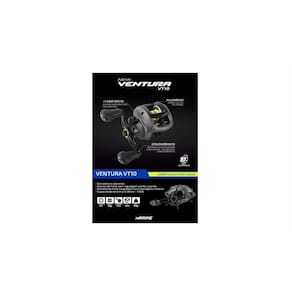 Carretilha new ventura vt10 marine sports manivela direita nova ventura vt10, agora com design mais ergonômico. Marca: marine sports carretel e manivela em alumínio freio com regulagem ponto a ponto pinhão apoiado por rolamento sistema de freio magnético com regulagem externa 9 rolamentos de + 1 de roletes relação de recolhimento: 7. 0:1 ipt: 76 cm peso: 196g capacidade de linha: 0. 30mm - 130m freio máximo: 4 kg manivela: direita