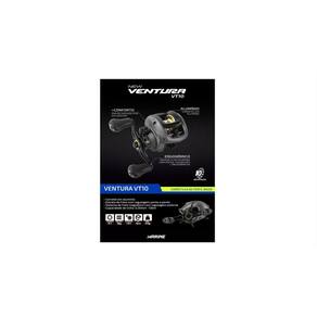 Carretilha new ventura vt10 marine sports manivela esquerda nova ventura vt10, agora com design mais ergonômico. Marca: marine sports carretel e manivela em alumínio freio com regulagem ponto a ponto pinhão apoiado por rolamento sistema de freio magnético com regulagem externa 9 rolamentos de + 1 de roletes relação de recolhimento: 7. 0:1 ipt: 76 cm peso: 196g capacidade de linha: 0. 30mm - 130m freio máximo: 4 kg manivela: esquerda cor: preta medidas aproximadas do produto - comprimento: 14 cm - altura: 6 cm - largura: 14 cm - peso: 196 g