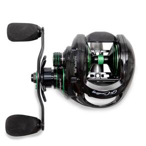 - Velocidade de Recolhimento: 7.1:1 - Drag: 10Kg - 6+1 rolamentos - Capacidade de linha 0.37mm/ 165m - Chassi em alumínio - Yoke híbrido - Sistema de freio: Magnético - Freio com discos de carbono - Coroa / Pinhão: Latão - Manivela em alumínio - Peso 256g - Capacidade de linha: 0.37mm - Knobs: E.V.A