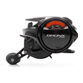 A carretilha Bronx é indicada para pescarias de alta performance, destacando-se pela força e resistência. Seu design em black piano com detalhes em laranja complementa suas linhas atraentes.