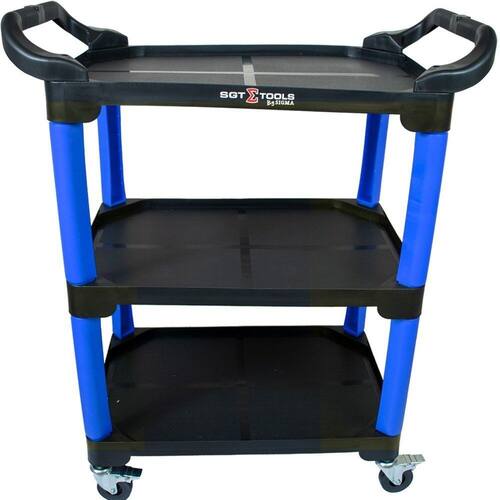 O carrinho 3 bandejas da SigmaTools é robusto e versátil, suporta até 100 kg e gira 360 graus. Ideal para organização e mobilidade, com estrutura resistente e espaço amplo para ferramentas e equipamentos Garantia de 03 meses/Organizadores de ferramentas