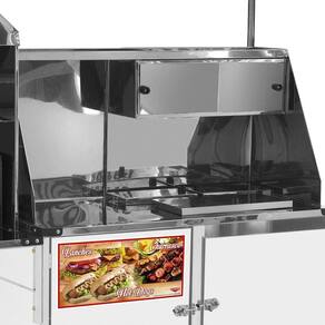 Faça um delicioso hot dog e lanche pois esse Carrinho Ambulante acompanha 4 canecas pequenas e 2 grandes aonde é possível colocar diversos tipos de molhos e recheios, uma incrível chapa para fazer lanches prensados e churrasqueira de 2 grelhas com 3 níveis aonde é possível fazer espetinhos e diversos tipos de assados no carvão, conta com sistema de gás baixa pressão garantindo uma melhor economia no uso do equipamento. Além disso o seu Carrinho 3 em 1 Cefaz conta com um exclusivo Adesivo e Toldo para dias mais quentes e chuvosos!