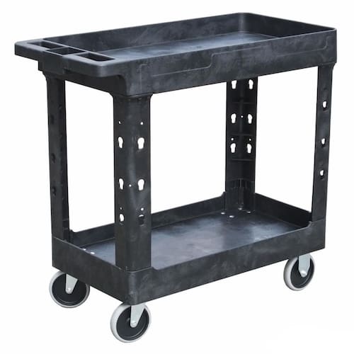 Carrinho Aberto Para Ferramentas Com 2 Prateleiras 3521 Lupus A Unidade de Armazenamento e Transporte 2 Prateleiras 3521 - Lupus, é fabricada em polipropileno, com 2 prateleiras e 4 rodizíos 2 Fixos e 2 Giratórios para movimentação. Possui compartimento adicional para ferramentas e peças de pequeno porte, ideal para oficinas automotivas, industriais e mecânica em geral.