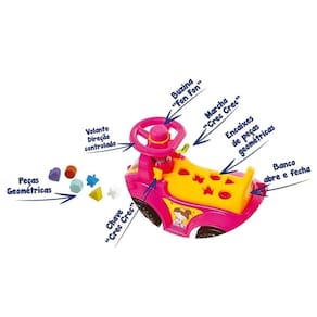Banco Interativo: O banco do carrinho pode ser aberto e fechado de maneira prática, criando formas de brincar e estimulando a interação com o brinquedo. Essa funcionalidade também ajuda a desenvolver a habilidade de manuseio e coordenação.Peças Geométricas Coloridas: O carrinho vem com 6 peças geométricas coloridas que podem ser encaixadas de diversas formas no compartimento do brinquedo. Essa atividade desenvolve a percepção de formas e cores, além de estimular a resolução de problemas e a motricidade fina.Buzina Divertida: Para completar a diversão, o carrinho possui uma buzina que emite sons divertidos, tornando a brincadeira ainda mais realista e interativa.