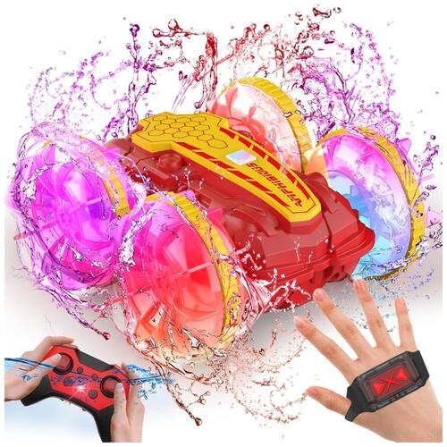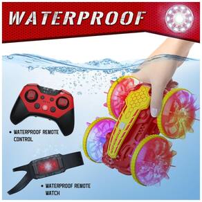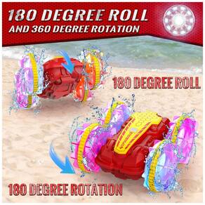 O Carro de Controle Remoto Anfíbio à Prova d'Água é uma incrível opção de diversão para crianças! Totalmente à prova d'água, ele pode não apenas correr em terra, mas também nadar na água. Com design preciso à prova d'água, à prova de vento e à prova de chuva, ele pode desafiar e conquistar qualquer ambiente extremo. As luzes coloridas nas rodas transparentes proporcionam efeitos deslumbrantes. Além de avançar, retroceder, virar para a esquerda e direita, este carro anfíbio pode realizar acrobacias como rotação de 360 graus, círculo e dirigir de ambos os lados. Conquiste facilmente terra, praia, lama, grama e água, proporcionando às crianças uma experiência realista de direção. Inclui controle remoto e controle manual por sensor de gestos. Duas baterias recarregáveis oferecem horas de diversão contínua. Um presente incrível para crianças aventureiras de 6 a 12 anos!