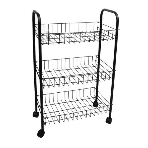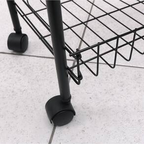 Fabricado em metal resistente, o carrinho possui estrutura firme e durável, além de um design moderno e funcional. Suas rodas deslizantes garantem mobilidade e agilidade no transporte, enquanto o formato aramado permite boa ventilação e visualização dos itens.