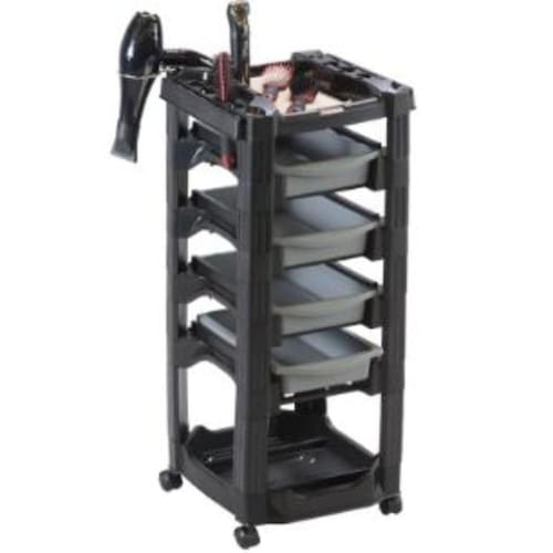 O tampo do carrinho possui suporte para secador de cabelos, pincel, escovas e tesouras. É possível triplicar sua área de trabalho acoplando duas gavetas laterais, permitindo acomodar ainda mais acessórios de forma organizada e prática.
