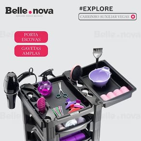 O design moderno e funcional do Carrinho Vegas ressalta dinamismo, charme e praticidade. Suas gavetas abrem para ambos os lados e possui suporte para secador de cabelos, pincel, tesouras e escovas. Também possui encaixes laterais para acoplar duas gavetas ao tampo, triplicando a área de trabalho do profissional. O carrinho é fabricado em polímero, o que confere em uma estrutura resistente ao produto. É o carrinho auxiliar mais vendido do Brasil.