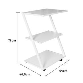 Carrinho Auxiliar Mesa em Z Metálica com 3 Prateleiras - Branco - A Mesa Carrinho auxiliar possui estrutura em aço - Possui 3 prateleiras em MDF para a acomodação de aparelhos e demais materiais utilizados por profissionais da área da saúde e estética. - Seu design moderno se encaixa perfeitamente em ambientes modernos e diferenciados - Ideal para salões de beleza, clínicas de estética, fisioterapia, estúdios de tatuagem, entre outros ambientes - Rodízios/rodinhas para locomoção Dados Técnicos e Características - Altura total: 79 cm - Largura total: 54 cm - Profundidade total: 40,5 cm - Peso do produto: 8,75 kg - Material Estrutura: Aço carbono - Material Prateleiras: MDF revestido 15 mm - Pintura Eletrostática Itens Inclusos - 01 Carrinho Auxiliar Mesa em Z com 3 Prateleiras Branco Observações Importantes - de 03 meses contra defeito de fábrica Marca: Não Informado Ean: 7908248200509