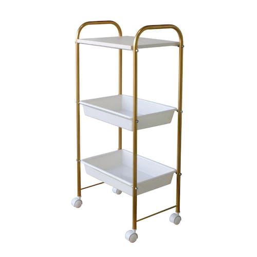 Carrinho auxiliar para estética, clinicas, cabeleireiro, depiladora, massagem, etc.Cor da estrutura dourado texturizadoO carrinho auxiliar é indicado para você que necessita de um ambiente de trabalho organizado. Ideal para armazenar produtos e equipamentos em clínicas, salões de beleza, centros de estética, etc. Descrição:- estrutura em tubo de aço redondo com acabamento em pintura eletrostática na cor dourado texturizado- 1 tampo em mdf na cor branco- 2 bandejas plásticas na cor branco para materiais- rodizios na cor branco- dimensões: altura: 94 cm comprimento: 48 cm largura: 31 cmImportante: produto entregue desmontado. Montagem fácil e rápido. Marca: Nayuna