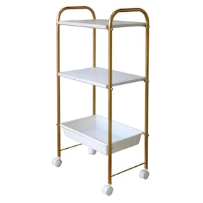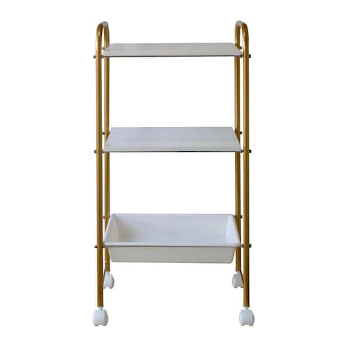 Carrinho auxiliar para estética, clinicas, cabeleireiro, depiladora, massagem, etc.Cor douradoO carrinho auxiliar é indicado para você que necessita de um ambiente de trabalho organizado. Ideal para armazenar produtos e equipamentos em clínicas, salões de beleza, centros de estética, etc. Descrição:- estrutura em tubo de aço redondo com acabamento em pintura eletrostática na cor dourado- 2 tampo em mdf na cor branco- 1 bandejas plásticas na cor branco para materiais- rodizios na cor branco- dimensões: altura: 94 cm comprimento: 48 cm largura: 31 cmImportante: produto entregue desmontado. Montagem fácil e rápido. Marca: Nayuna