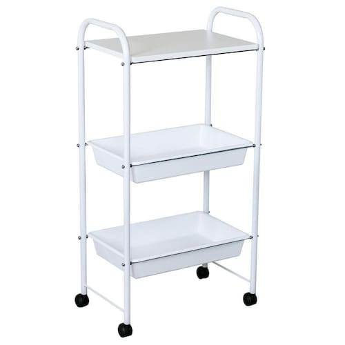 Carrinho auxiliar para cabeleireiro, estética, depiladora, etcO carrinho auxiliar é indicado para você que necessita de um ambiente de trabalho organizado. Ideal para armazenar produtos e equipamentos em clínicas, salões de beleza, centros de estética, etc. Descrição:- estrutura em tubo de aço redondo com acabamento em pintura eletrostática- 1 tampo em mdf e 2 bandejas plásticas para materiais- dimensões: altura: 94 cm comprimento: 48 cm largura: 31 cmImportante: produto entregue desmontado. Montagem fácil e rápido. Marca: Nayuna