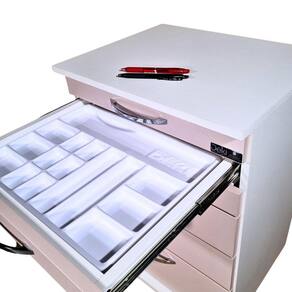 Organização e praticidade para profissionais de unhas: o Carrinho Auxiliar da DEKI MÓVEIS CLÍNICOS é a escolha perfeita!O Carrinho Auxiliar para Personal Nail da DEKI MÓVEIS CLÍNICOS é o aliado ideal para profissionais de unhas. Com um design moderno e funcional, oferece praticidade e organização. Suas cinco gavetas espaçosas fornecem armazenamento conveniente para os materiais essenciais. Além disso, sua construção resistente e fácil limpeza garantem durabilidade e higiene impecáveis. Com o Carrinho Auxiliar para Personal Nail, você terá tudo ao seu alcance, facilitando seu trabalho e proporcionando excelentes resultados.VANTAGENSDesign moderno: As mesas auxiliares da DEKI MÓVEIS CLÍNICOS destacam-se pelo seu design contemporâneo e elegante, conferindo um toque estético a qualquer ambiente.Durabilidade: Elaboradas com materiais de alta qualidade, essas mesas garantem resistência e durabilidade ao longo do tempo.Praticidade: com seu peso reduzido e fácil manuseio, essas mesas são convenientes e versáteis, se adaptando sem dificuldade a diferentes espaços.Versátil: Com uma extensa variedade de modelos disponíveis, é possível escolher aquele que melhor atende às necessidades individuais de cada cliente..Ergonomia: O design ergonomicamente planejado dessas mesas prioriza o conforto durante o uso.Preço acessível: Com uma excelente relação custo-benefício, essas mesas estão disponíveis a um preço acessível para atender às necessidades de diversos públicos.Variedade: Ampla variedade: Com uma ampla seleção de modelos disponíveis, é possível escolher aquela que melhor se adequa às necessidades individuais de cada cliente.Higienização: A facilidade de manutenção e limpeza é um benefício notável, devido ao revestimento em MDF TX, que possibilita uma higienização descomplicada e eficiente, assegurando um elevado nível de assepsia em ambientes clínicos e hospitalares.Segurança: Com uma estrutura resistente e confiável, essas mesas proporcionam proteção e tranquilidade durante o uso.Excelente custo: As mesas auxiliares oferecem uma excelente combinação de qualidade, durabilidade, confiabilidade e custo acessível, tornando-as uma escolha inteligente e vantajosa.ATENÇÃO!!! A PRIMEIRA GAVETA NÃO ABRE, É FIXA, SERVE APENAS PARA MOVIMENTAR A MESA AUXILIAR!!!Carrinho Auxiliar para Personal Nail - 5 GavetasJÁ VEM PRONTO!!! A MESA AUXILIAR CHEGA MONTADO ATÉ VOCÊ!!!PRONTA PARA SER UTILIZADA, NÃO PERCA TEMPO COM MONTAGENS!!!BANDEJA DIVISÓRIAAcompanha 01 (uma) bandeja divisória organizadora com 15 (quinze) espaços divididos em tamanhos variados, para acomodar utensílios e materiais pertinentes.QUANTIDADE DE GAVETAS05 (cinco) gavetas distribuídas de forma harmônica, oferecendo espaço suficiente para acomodar diversos utensílios e materiais de trabalho.MATERIALEstrutura (caixaria) em MDF TX Branco e frente das gavetas em MDF Rosa que garante um toque de estilo, com a cor rosa adicionando um diferencial ao design da mesa auxiliar e puxadores fabricados com liga importada da Europa. Materiais de nobilíssima qualidade selecionados pela nossa equipe de especialistas.CORRosa e Branco.MEDIDAS EXTERNASLargura 49cm x Altura 72cm x Profundidade 39cmMEDIDAS INTERNAS2 gavetas com Largura 39,5cm x Altura 4,5cm x Profundidade 30cm2 gavetas com Largura 39,5cm x Altura 9,5cm x Profundidade 30cm1 gaveta com Largura 39,5cm x Altura 15cm x Profundidade 30cmMATERIAL DOS PUXADORESMetal cromado, em liga germânica, prevenindo a oxidação e prolongando a vida útil do móvel.COMPOSIÇÃO5 (cinco) gavetas.QUANTIDADE DE RODÍZIOS04 (quatro) rodízios com tratamento superficial da fixação zincado, as rodinhas possuem maciez e silêncio ao se movimentar, distribuindo o peso proporcionalmente para facilitar a locomoção da mesa auxiliar.QUALIDADENossos produtos são testados e aprovados por uma equipe especializada de profissionais, passam por minuciosos testes de qualidade antes de serem embalados e enviados.GARANTIATODA a linha de produtos da DEKI MÓVEIS CLÍNICOS possuí 3 meses de garantia contra defeitos de fabricação.PRODUTOS A PRONTA ENTREGAA DEKI MÓVEIS CLÍNICOS, possuí todos os móveis em estoque, portanto todos os nossos produtos são a pronta entrega. Garantindo dessa maneira, o MELHOR PRODUTO no MENOR TEMPO DE ENTREGA!MAQUINÁRIO DE PONTANossa empresa utiliza máquinas modernas de última geração que asseguram um acabamento impecável em todas as linhas da DEKI MÓVEIS CLÍNICOS, dentro das normas da NR-12, que protegem nosso quadro de colaboradores e certifica a qualidade na produção.AVISOSFique atento, as cores podem sofrer alterações dependendo do seu monitor, além da cor, pequenos detalhes e acabamentos podem não ficar evidentes na foto, por isso as imagens são meramente ilustrativas, podendo ser alterados também os modelos de rodízios, puxadores, cuba e torneira. Todos os nossos produtos são fabricados seguindo todas as normas da ANVISA.LIMPEZA E CUIDADOSEstrutura: Pano umedecido com água/ agente desinfetante;Cuidados: Não utilizar produtos químicos ou abrasivos na limpeza. Evite batidas e o contato com objetos cortantes.