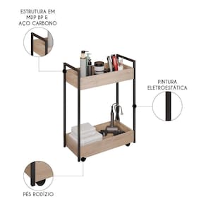 O design estilo industrial adiciona um toque de modernidade, ao passo que as rodinhas potencializam a funcionalidade, já que fica mais prático a movimentação dos itens. Seja como carrinho auxiliar para estética ou salão de beleza, seja como organizador de banheiro ou até mesmo como multiuso para lavanderia. Não importa a finalidade, já que esse carrinho organizador 2 caixas pode servir para todas essas opções e quantas mais você desejar, afinal, versatilidade é o atributo que melhor define essa peça.