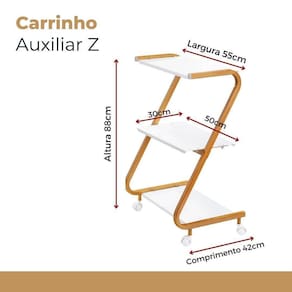 Carrinho auxiliar modelo z para cabeleireiro, estética, depiladora, massagem, tatuador, tatuagem, nail, sobrancelha, etc