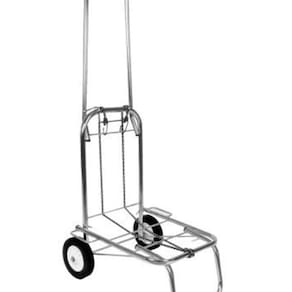 Carrinho dobrável capacidade 100kg Rodas em PVC revestidas em borracha.Acabamento cromado.Acompanha cinta elástica de 1,5m para amarração de carga.CARACTERÍSTICAS TÉCNICAS:Composição: Tubos de 3/4 e 5/8 c/costura - Arames BTC 6mmRoda: 5 de PP Revestida de Borracha Ean: 7898927170011