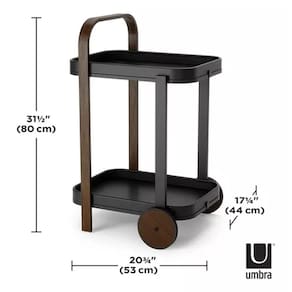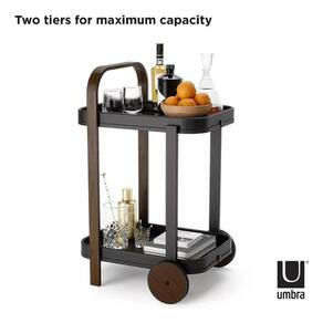 Carrinho de bar Umbra Bellwood O que é o carrinho de bar Bellwood? Um moderno carrinho de bar de madeira em dois tons, Bellwood Bar and Serving Cart é o complemento perfeito para qualquer canto da sua casa.