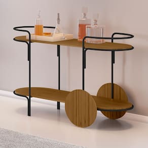O carrinho bar Órbita traz modernidade e versatilidade para o seu ambiente. Com design arrojado e funcional, ele é perfeito para organizar bebidas e acessórios com estilo, agregando sofisticação a qualquer ocasião.
