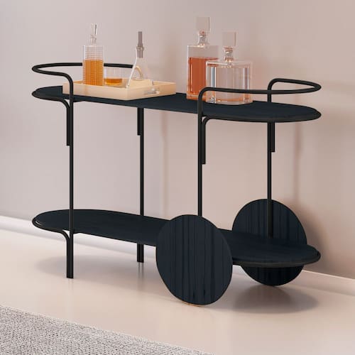 O carrinho bar Órbita traz modernidade e versatilidade para o seu ambiente. Com design arrojado e funcional, ele é perfeito para organizar bebidas e acessórios com estilo, agregando sofisticação a qualquer ocasião.