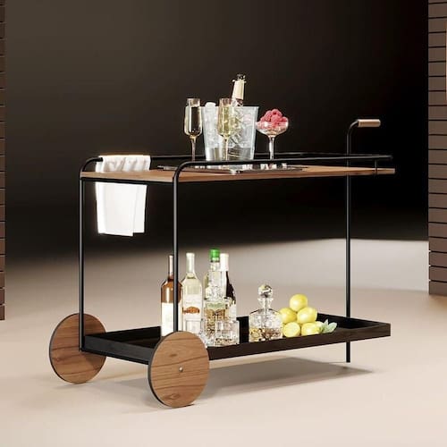 O Carrinho Bar Agnes, com estruturas metálicas e prateleira de madeira, seu design moderno e compacto oferece praticidae e sofistificação. Você não apenas ganha uma peça para organizar suas garrafas favoritas, como também leva espaço para acomodar utensílios, como balde de gelo e até mesmo taças, além de ser lindo e ajudar na decoração da sua sala! Confira e aproveite!