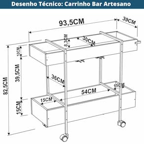 O Carrinho Bar da Artesano é um móvel confeccionado em MDP BP 15mm, fundo MDF 6mm, estrutura metálica em aço carbono de tubo redondo de diâmetro 15mm com acabamento em pintura epóxi fosca. Um móvel multifuncional que facilita na hora de organizar e armazenar diversos objetos. Traz como característica um traço industrial, sofisticado e moderno. Fundada em 1 de julho de 1982, sediada em Bento Gonçalves, na Serra Gaúcha, a Artesano é uma empresa que oferece aos clientes móveis de qualidade, design moderno e comprometimento com as entregas. Mais que um negócio, a Artesano é uma família que contribui para o bem estar social, respeitando o indivíduo, a sociedade e o meio ambiente. É uma empresa com raízes em seu conhecimento adquirido no passado, mas com olhos no futuro, no crescimento constante, no aperfeiçoamento, lutando sempre pela satisfação da pessoa mais importante de todo o processo: VOCÊ! Além da grande abrangência Nacional, a Artesano exporta suas linhas de produtos para os cinco Continentes, móveis com design exclusivos e materiais de primeira