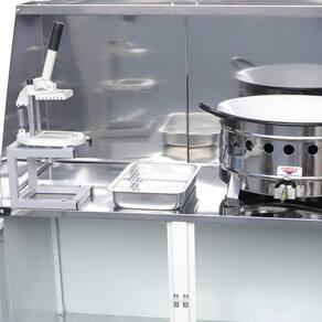 Essa Carrocinha Ambulante é fabricada em aço carbono com chapas galvanizadas, acompanha fritador 16" e 1 picador de legumes pequeno para cortas as batatas na hora. Com o sistema de rodas pneumáticas você garante o transporte seguro do Carrinho para onde quiser!