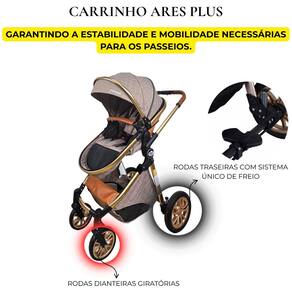 Carrinho de bebe 3 em 1 reversível vira moisés capota retrátil passear ares plus marrom grena Carrinho de bebê 3 em 1 ares plus passear Este versátil carrinho 3 em 1 é a escolha ideal para os pais modernos, ofercendo conforto e praticidade desde o nascimento até os 15 kg da criança. Com um cinto de segurança de 5 pontos e estrutura em alumínio anodizado dourado, o carrinho ares plus garante segurança e durabilidade incomparáveis. Seu assento reversível e ajustável em várias posições, permitindo se adaptar as necessidades dos pequenos em diferentes fases. O assento do carrinho ares plus pode ser transformado em um moisés para os momentos de descanso do bebê com facilidade. Possui 2 rodas dianteiras giratórias e 2 traseiras com sistema único de freios, garantindo a estabilidade e mobilidade necessárias para os passeios. Além disso, com sistema de fechamento com uma única mão, tornamos o transporte e armazenamento do carrinho uma tarefa simples e rápida para os pais ocupados. Detalhes em material sintético conferem um toque de elegância e sofisticação ao design do carrinho ares plus. E para oferecer ainda mais conveniência, ele é compatível com o bebê conforto aconchego da passear, garantindo uma experiência completa desde os primeiros dias do bebê. Principais características: Carrinho 3 em 1 Cinto de segurança de 5 pontos Compatível com o bebê conforto aconchego vendido separadamente Assento reversível e ajustável para várias posições Assento transforma em moisés 2 rodas dianteiras giratórias Sistema único de freio nas rodas traseiras Detalhes em material sintético Cesto porta objeto com capacidade de 2 kg Capa de proteção para os pés Registro do produto no inmetro: 009618/2022 Medidas: - medida do carrinho aberto: 104x60x93 cm axlxp : 12 meses direto com o fabricante Homologação Inmetro: CE-BRI/ICEPEX-I 02439-25-5