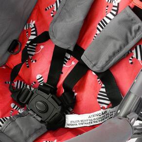 O cesto suporta até 5 kg. Fechamento ultra fácil, cinto de 5 pontos, apoio para os pés do bebê, barra de apoio, freios nas rodas traseiras e controle rotatório nas frontais, assento com encosto reclinável, capota retrátil com visor, carrinho com estrutura leve.