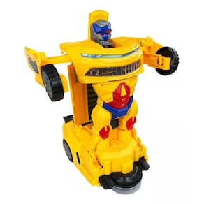-acende luzes -emite som -bate e volta -anda para todas as direções se transformando em robô e carro, desvia sozinho de obstáculos. - necessita de 3 pilhas aa. - não possui controle remoto não.