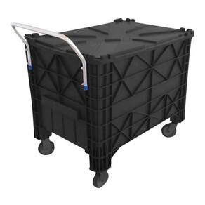 Fabricado em plástico super resistente (polietileno), pode ser utilizado como lixeira para armazenamento e transporte de sacos de lixo ou para transportar materiais pesados. É ideal para condomínios devido seu tamanho e para ser transportado em elevadores. Possui rodas de borracha maciça de 5 polegadas e cabo de aço galvanizado 1020.