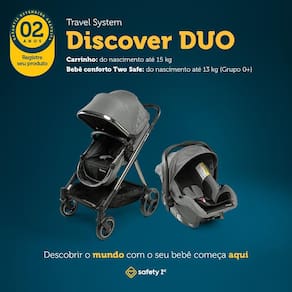 O Travel System Discover Duo da Safety 1st é a escolha perfeita para quem busca praticidade e segurança desde o nascimento. Combinando carrinho e bebê conforto, ele está pronto para acompanhar todas as aventuras da sua família!