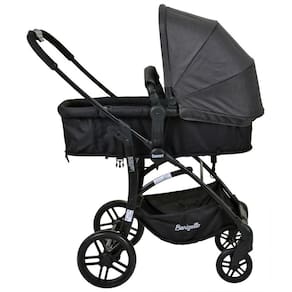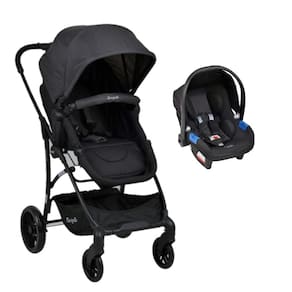 Vantagens do Produto Assento reversível no carrinho Encosto reclinável em múltiplas posições Bebê conforto acoplável com adaptador incluso Capota ajustável no carrinho e removível no bebê conforto Cinto de segurança de 5 pontos (carrinho) e 3 pontos (bebê conforto) Estrutura leve e resistente Cesto porta-objetos de fácil acesso Rodas dianteiras giratórias para mais mobilidade Concha ergonômica com função balanço