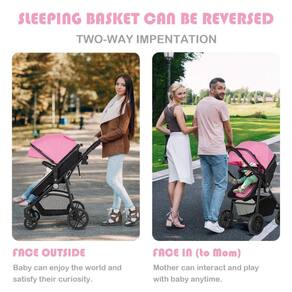 Carrinho de Bebê 2 em 1 com Suspensão e Porta Copos, Baby Joy, Rosa