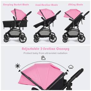 CONFORTÁVEL E ADAPTÁVEL Este carrinho possui encosto e alça ajustáveis. Você pode ajustar a parte de trás do carrinho para atender aos diferentes requisitos do seu bebê, seja para deitar, sentar ou dormir. O assento confortável com arnês de segurança de 5 pontos e almofada de dormir ajustável em inclinação, oferece conforto e segurança para o seu bebê. Além disso, a alça de empurrar tem conversões bidirecionais, permitindo que você possa optar por enfrentar o seu bebê conforme sua conveniência.