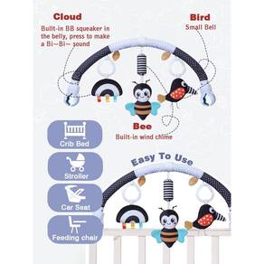 Brinquedos para berço Você pode montá-lo facilmente em diferentes carrinhos de bebê, carrinho de bebê, berço, berço e balanços. Brinquedos pendurados para bebês aplicação para a largura: 11,6-20,2 pol/29,5-51,3 cm. - Brinquedos de assento de carro para bebês de 0 a 6 meses, os brinquedos de carrinho de bebê têm uma variedade de gráficos, sino de vento embutido em abelha. O pássaro fofo tem um pequeno sino. O BB squeaker Bull-in na barriga da nuvem, pressione para fazer um som Bi~ Bi~. - Brinquedos de assento de carro, é um brinquedo de desenvolvimento inicial. Brinquedos de berço pendurados feitos de materiais laváveis. Cada carrinho de bebê pode ser montado separadamente e jogado separadamente. - O móbile de bebê para berço é fácil de usar. O berço tem duas formas de alongamento e arco. Você pode montá-lo facilmente em diferentes carrinhos de bebê, assento de carro, berço, berço e balanços. Brinquedos pendurados para aplicação de bebês para a largura: 11,6-20,2 pol/29,5-51,3 cm. - brinquedos para carrinho de bebê que acompanham o bebê dia e noite. Pode desenvolver a visão auditiva, desenvolvimento das mãos, imaginação e criatividade. O brinquedo de arco do carrinho pode ser "naturalmente" reconfortante, em casa ou em movimento. - 100% SATISFAÇÃO se você não estiver satisfeito, prometemos que faremos isso certo para você.