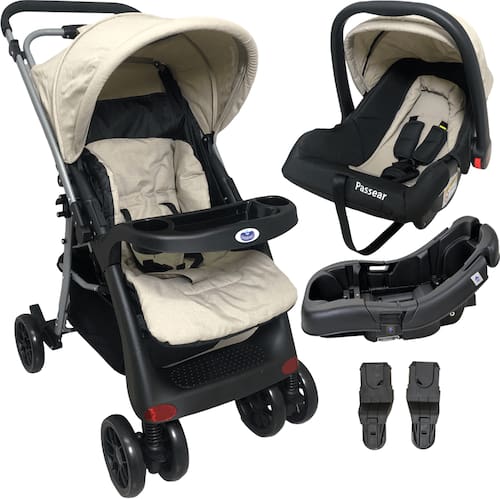 Carrinho de Bebê Passear Baby Atena Reversível com Bebê Conforto Nina e Base para Carro