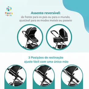 Carrinho com Bebê Conforto TS DUO Prestige Cinza - Voyage O carrinho Prestige conta com assento reversível, permitindo que os pais andem olhando para o recém-nascido. Meses depois, quando ele crescer e estiver mais interessado em tudo o que está ao seu redor, é só virar o assento e deixar a criança aproveitar o passeio. O Prestige tem 4 rodas robustas com amortecedores, indo com facilidade de um tipo de lado a outro, mantendo o conforto para a criança. O freio é centralizado e as rodas dianteiras ainda têm giro 360 com trava, para o adulto decidir quando quer andar apenas em linha reta e quando quer ter mais liberdade de movimento. A capota conta com proteção UV50+, além de aba de sol e janela de ventilação com tela. O cesto do carrinho é amplo e de fácil acesso com capacidade para 2,5 kg, para você levar tudo o que possa precisar. Compatível com bebê conforto, o TS Prestige acompanha o bebê conforto Beta Voyage e os adaptadores para acoplá-lo na estrutura do carrinho. O bebê conforto tem 5 modos de uso: fixo, balanço, transporte e instalação no carrinho e no automóvel. Seu cinto de segurança de 3 pontos possui protetores acolchoados com ajuste central e 2 alturas. Além disso, possui de assento e capota removível que pode ser lavada na máquina. - Disponível nas Cores: Preto, Preto Terracota e Cinza. Principais Características: Carrinho: - Idade Recomendada: Do Nascimento até 15kgs - Assento Reversível - 3 Posições de Inclinação, com Ajuste Fácil com uma Única Mão - Encosto Ajustável em Múltiplas Antirrefluxo Quando Utilizado no Modo Moisés - Capota Ampla com Proteção FPS UV50 + e Aba de Sol - Janela de Ventilação na Capota que Funciona como Visor - Possui 4 Rodas Robustas com Amortecedores e Giro 360 com Trava nas Rodas Dianteiras - Barra Frontal Removível com Abertura Para Facilitar Colocar ou Retirar a Criança - Rodas Traseiras com Freio Centralizado - Cinto de Segurança de 5 Pontos com Protetores Acolchoados e Ajuste de Altura e Largura - Cesto Amplo de Fácil Acesso com Capacidade para 2,5 kgs - Acompanha adaptadores para o bebê conforto - Fechamento Compacto com Moisés Dobrável Junto com a Estrutura Bebê Conforto: - Idade Recomendada: Do Nascimento até 13kgs - Grupo: 0+ - Instalação: De costas ao Movimento com Cinto de 3 Pontos do Veículo - de assento: Almofada Acolchoada Removível - Apoio de cabeça: Almofada Acolchoada Reposicionável - Cinto de Segurança de 3 Pontos com Protetores Acolchoados - Cinto de Segurança com Ajuste Central e 2 Alturas - 5 Modos de Uso: Fixo, Balanço, Carregar, Instalar no Carro ou Carrinho - Capota Removível - Capa Removível e Lavável à Máquina - Compatível com Base Beta Vendida Separadamente Especificações Técnicas: - Conteúdo da Embalagem: 1 Carrinho, 1 Bebê Conforto, 1 Adaptador para Bebê Conforto + Manuais. - Dimensões do Carrinho Aberto AxLxP : 110,0 x 63,0 x 84,0cm - Dimensões do Carrinho Fechado AxLxP : 36,0 x 100,0 x 67,0cm - Dimensões do Bebê Conforto AxLxP : 62,0 x 43,0 x 53,0cm - Composição/Material: Alumínio, PP, Nylon, EVA, Poliéster e HDPE - Peso do Produto: Carrinho: 8,7kgs Bebê Conforto: 2,5kgs - : 6 meses Contra Defeitos de Fabricação Pelo Fabricante - Certificação: Carrinho Inmetro 012355/2023 Bebê Conforto: 008019/2021 - Código do Fabricante: CAX00859 - EAN: 7908238810251 - Marca: Voyage Imagens Meramente Ilustrativas. As cores e estampas podem variar de acordo com o lote do fabricante. Homologação Inmetro: CE-BRI/IQB 002276 52415/18-041
