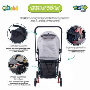 Carrinho de Bebê com Bebê Conforto 2 em 1 Youturn Maxi Baby O Kit Carrinho de Bebê com Bebê Conforto Travel System Youturn Preto Maxi Baby é a solução perfeita para pais que buscam praticidade, conforto e segurança em todos os momentos com seus pequenos. Destaque para a alça reversível, que permite alternar o sentido do passeio com um simples movimento, mantendo o contato visual constante com seu filho e proporcionando maior interação durante os passeios. Confeccionado com tecidos duráveis e resistentes Oxford 300D e catiônico , o YouTurn oferece alta qualidade e longa vida útil. A capota completa garante proteção eficaz contra o sol e o vento, assegurando passeios agradáveis em qualquer clima. O encosto é ajustável em múltiplas posições, incluindo a posição de descanso total, ideal para sonecas tranquilas. O cinto de segurança de 5 pontos oferece máxima segurança durante os passeios, enquanto a bandeja frontal removível facilita o acesso ao bebê e a higienização. O amplo cesto porta-objetos oferece praticidade para transportar tudo o que você e seu bebê precisam. As rodas aproximadamente 15cm garantem estabilidade e suavidade em diferentes tipos de terreno, desde calçadas lisas até pisos mais irregulares. Indicado para bebês de 0 a 3 anos até 15 kg . O Bebê Conforto YouTurn foi desenvolvido para garantir a segurança e o conforto do seu pequeno durante os passeios. Feito com materiais de alta qualidade, como PP e poliéster, é adequado para crianças do grupo de massa 0+ até 3 anos 15 kg . Conta com acessórios práticos, como capota para proteção solar e almofada redutora. O sistema de retenção é integral, com cinto de 5 pontos, garantindo máxima segurança. Produto certificado pelo INMETRO. Principais Características do Carrinho: - Idade recomendada: De 0 meses até 3 anos 15 kg - Barra de empurrar reversível: Permite alterar a direção do passeio, mantendo o contato visual com o bebê. - Tecido de alta qualidade: Oxford 300D e tecido catiônico, oferecendo durabilidade e resistência. - Cinto de segurança de 5 pontos: Garante a segurança do bebê durante o passeio. - Encosto ajustável: Diversas posições de reclinação, incluindo uma posição de descanso completo. - Bandeja frontal destacável: Facilita o acesso ao bebê e pode ser removida. - Cesto: Oferece praticidade para armazenar itens essenciais. - Rodas de 6 polegadas dianteiras e traseiras : Garantem estabilidade e controle em diferentes superfícies. - Capota extralonga oferece máxima proteção contra o sol, garantindo passeios seguros e confortáveis mesmo nos dias mais ensolarados. - Abertura traseira da capota oferece ventilação extra e facilita a visualização do bebê, combinando praticidade e conforto em um único recurso. Principais Características do Bebê Conforto: - Material de Alta Qualidade: Fabricado em PP e poliéster, garantindo durabilidade e conforto. - Acessórios Inclusos: Capota para proteção solar e almofada redutora para maior conforto do bebê. - Sistema de Retenção: Cinto de 5 pontos, oferecendo segurança integral para a criança. - Fixação no Veículo: Utiliza o cinto de segurança de 3 pontos do carro para garantir a fixação segura. - Tamanho Compacto: Dimensões de 51x60x42 cm, ideal para facilitar o transporte e uso. - Conforto e Segurança: Design projetado para proporcionar a máxima proteção e bem-estar durante o passeio. Especificações Técnicas: - Conteúdo Da Embalagem: 1 Carrinho, 1 Bebê Conforto e 1 Manual De Instrução - Composição/Material: PP, Poliéster, Aço e Tecido - Dimensões: Carrinho: 75,0 x 47,0 x 104 cm aprox. Bebê Conforto: 51,0 x 60,0 x 42,0 cm aprox. - Peso: Carrinho: 8,5kgs aprox. Bebê conforto: 3 kgs aprox. - : 12 Meses Contra defeitos de fabricação pelo fabricante - Certificação: INMETRO 014730/2024 - Código Do Fabricante: 21800 / 21801 - EAN: 7899403218005 / 7899403218012 - Marca: Maxi Baby Imagens Meramente Ilustrativas, As Cores E Estampas Podem Variar De Acordo Com O Lote Do Fabricante.