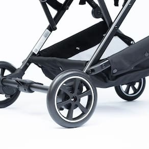 ESTRUTURA LEVE **Pesando apenas 7,5 kg**, o Mini é leve e de fácil transporte, tendo sua estrutura composta 100% dobrável e com design lindo e inovador. Além disso, conta com um cesto de objetos espaçoso que suporta até 5 kg.