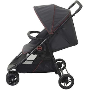 Características Técnicas: Protetor frontal com acabamento externo com um toque macio e confortável Amortecedores nas rodas dianteiras giratórias Encosto regulável em 4 posições Capota regulável e removível Freio traseiro conjugado Amplo cesto porta-objetos Cinto de segurança de 5 pontos Trava para fechamento