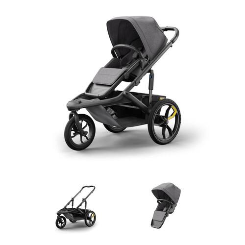 Estrutura do Carrinho Veer Switchback e Jog Jogger: Complementando o assento Switchback, o quadro do carrinho Veer Switchback e Jog Jogger é uma obra-prima ergonômica projetada para desempenho excepcional em todos os terrenos. Este carrinho de corrida todo-o-terreno de 3 rodas oferece uma capacidade de manobra de próximo nível, absorção de choque superior e durabilidade incomparável. Compatível com todos os principais assentos infantis de carro (adaptadores vendidos separadamente), este carrinho permite que você aproveite passeios relaxantes ou corridas emocionantes, oferecendo conforto e segurança para o seu pequeno aventureiro. Pesando pouco mais de 9 kg e podendo ser dobrado, o &Jog é fácil de colocar no porta-malas no caminho para sua próxima aventura. O guiador ajusta de 99 cm a 108 cm de altura para acomodar a altura do corredor.