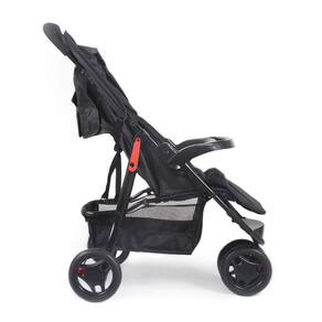 Leve e compacto, tem três rodas e freio único nas traseiras. O colchonete acolchoado é removível e pode ser lavado na máquina. Inclinação total do encosto (tipo berço) e visor na capota.