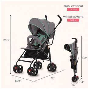 Recursos Adicionais: Leve, Compacto, Durável, Encosto Multiposição, Sistema de Cinto 5 Pontos Acolchoado, Posição Reclinável, Cesto de Armazenamento Extra Grande, Capota de Tamanho Completo com Protetor Solar, Capa de Assento Removível para Limpeza Fácil, Porta-Copos,