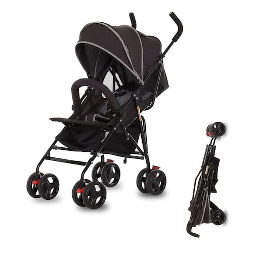 Componentes Incluídos: Cinto de segurança de 5 pontos, rodas dianteiras giratórias, freios nas rodas traseiras, capota de tamanho completo com viseira solar retrátil, capa de assento removível, cesto de armazenamento extra grande, suporte para copo,