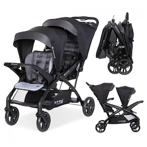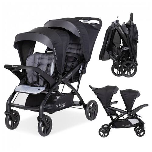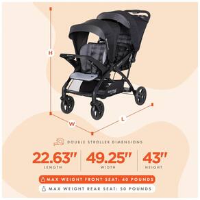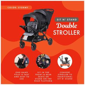 As crianças podem sentar se nos bancos dianteiro e traseiro do carrinho ou ficar na plataforma traseira Assentos de carro compatíveis com tendência para bebês Cor tempestuoso Equipado com um cinto de segurança de 5 pontos para máxima segurança 2 painéis de cobertura totalmente ratcheting no banco da frente e dossel fixo com viseira para proteção solar Suporte compacto com uma mão O banco traseiro removível converte o carrinho no modo de bancada e em pé para facilitar o transporte e o zenamento Dimensões dobradas 55 x 86 x 40 centímetros Bandeja pai coberta com porta copos, compartimento coberto e uma cesta extra grande para zenamento extra Dimensões 55 x 125 x 109 centímetros Marca: Não Informado