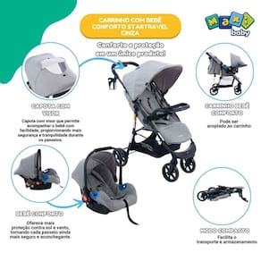 Carrinho de Bebê Com Bebê Conforto Startravel - Maxi Baby O Carrinho de Passeio StarTravel e o Bebê Conforto StarTravel são a combinação perfeita para pais que buscam praticidade, segurança e conforto para seus pequenos. O Carrinho possui uma estrutura em aço, assento de poliéster e PU que oferece robustez e resistência. Seu sistema de retenção é composto por PP e poliéster, garantindo a proteção da criança. Com mecanismo de travamento por liberação em duas ações consecutivas, o carrinho é fácil de manusear e não necessita de ferramentas para montagem. Inclui acessórios como cesta porta-objetos, bandeja frontal e porta bebidas, tornando-o ainda mais funcional. Adequado para crianças a partir de 6 meses até 3 anos 15 kg , é a solução perfeita para passeios tranquilos e seguros. O Bebê Conforto Startravel, fabricado com materiais de PP e poliéster, oferece total segurança para o transporte do seu pequeno. Com sistema de retenção integral de 5 pontos e capacidade para o grupo 0+, acompanha capota e almofada redutora para maior conforto. Seu sistema de fixação no veículo é feito através do cinto de segurança de 3 pontos, proporcionando estabilidade e segurança durante o trajeto. Ideal para complementar o Carrinho de Passeio, o Bebê Conforto Startravel garante viagens mais seguras e confortáveis para você e seu bebê. Principais Características do Carrinho: - Idade recomendada: De 6 meses até 3 anos 15 kg - Sistema de fechamento simples que pode ser realizado com uma única mão. - Trava adicional para maior segurança durante o transporte. - Rodas dianteiras destacáveis 17x5 cm e rodas traseiras 20x5 cm , com suspensão e rolamento para condução suave. - Mecanismo de travamento fácil e freio de um toque. - Cinto de segurança de 5 pontos e descanso de pernas ajustável. - Capota destacável para proteção solar e maior visibilidade. - Cesto porta-objetos removível para armazenamento fácil. - Mini bolso traseiro para facilitar o acesso a itens essenciais. - Conjunto de rodas dianteiras giratórias para fácil manobra. - Gancho dobrável automático para facilitar o armazenamento. - Suporte para copos para maior praticidade. Principais Características do Bebê Conforto: - Idade Recomendada: De 0 meses até 13 kgs. - Mecanismo de Travamento: Liberação em duas ações consecutivas, sem a necessidade de ferramentas. - Sistema de Retenção: Cinto de 5 pontos integral . - Fixação no Veículo: Cinto de segurança de 3 pontos do veículo. - Acessórios Inclusos: Capota e Almofada redutora para conforto extra. - Tipo: Bebê conforto, adequado para transporte no carro. - Escolha entre as cores: Preto ou Cinza Especificações Técnicas: - Conteúdo Da Embalagem: 1 Carrinho, 1 Bebê Conforto e 1 Manual De Instrução - Composição/Material: Estrutura em Aço, sistema de retenção em polipropileno e PU e assento em Poliéster e PU - Dimensões: Carrinho: 94 x 52 x 105 cm. Bebê Conforto: 51 x 60 x 42 CM cm aprox. - Peso: Carrinho: 8,5 kgs aprox. Bebê conforto: 3 kgs aprox. - : 12 Meses Contra defeitos de fabricação pelo fabricante - Certificação: INMETRO 014730/2024 - Código Do Fabricante: 21790 / 21791 - EAN: 7899403217909 / 7899403217916 - Marca: Maxi Baby Imagens Meramente Ilustrativas, As Cores E Estampas Podem Variar De Acordo Com O Lote Do Fabricante. Homologação Inmetro: CE-BRI/IQB 002276 52415/18-041 Marca: Não Informado