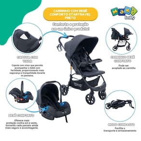 Carrinho de Bebê Com Bebê Conforto Startravel - Maxi Baby O Carrinho de Passeio StarTravel e o Bebê Conforto StarTravel são a combinação perfeita para pais que buscam praticidade, segurança e conforto para seus pequenos. O Carrinho possui uma estrutura em aço, assento de poliéster e PU que oferece robustez e resistência. Seu sistema de retenção é composto por PP e poliéster, garantindo a proteção da criança. Com mecanismo de travamento por liberação em duas ações consecutivas, o carrinho é fácil de manusear e não necessita de ferramentas para montagem. Inclui acessórios como cesta porta-objetos, bandeja frontal e porta bebidas, tornando-o ainda mais funcional. Adequado para crianças a partir de 6 meses até 3 anos 15 kg , é a solução perfeita para passeios tranquilos e seguros. O Bebê Conforto Startravel, fabricado com materiais de PP e poliéster, oferece total segurança para o transporte do seu pequeno. Com sistema de retenção integral de 5 pontos e capacidade para o grupo 0+, acompanha capota e almofada redutora para maior conforto. Seu sistema de fixação no veículo é feito através do cinto de segurança de 3 pontos, proporcionando estabilidade e segurança durante o trajeto. Ideal para complementar o Carrinho de Passeio, o Bebê Conforto Startravel garante viagens mais seguras e confortáveis para você e seu bebê. Principais Características do Carrinho: - Idade recomendada: De 6 meses até 3 anos 15 kg - Sistema de fechamento simples que pode ser realizado com uma única mão. - Trava adicional para maior segurança durante o transporte. - Rodas dianteiras destacáveis 17x5 cm e rodas traseiras 20x5 cm , com suspensão e rolamento para condução suave. - Mecanismo de travamento fácil e freio de um toque. - Cinto de segurança de 5 pontos e descanso de pernas ajustável. - Capota destacável para proteção solar e maior visibilidade. - Cesto porta-objetos removível para armazenamento fácil. - Mini bolso traseiro para facilitar o acesso a itens essenciais. - Conjunto de rodas dianteiras giratórias para fácil manobra. - Gancho dobrável automático para facilitar o armazenamento. - Suporte para copos para maior praticidade. Principais Características do Bebê Conforto: - Idade Recomendada: De 0 meses até 13 kgs. - Mecanismo de Travamento: Liberação em duas ações consecutivas, sem a necessidade de ferramentas. - Sistema de Retenção: Cinto de 5 pontos integral . - Fixação no Veículo: Cinto de segurança de 3 pontos do veículo. - Acessórios Inclusos: Capota e Almofada redutora para conforto extra. - Tipo: Bebê conforto, adequado para transporte no carro. - Escolha entre as cores: Preto ou Cinza Especificações Técnicas: - Conteúdo Da Embalagem: 1 Carrinho, 1 Bebê Conforto e 1 Manual De Instrução - Composição/Material: Estrutura em Aço, sistema de retenção em polipropileno e PU e assento em Poliéster e PU - Dimensões: Carrinho: 94 x 52 x 105 cm. Bebê Conforto: 51 x 60 x 42 CM cm aprox. - Peso: Carrinho: 8,5 kgs aprox. Bebê conforto: 3 kgs aprox. - : 12 Meses Contra defeitos de fabricação pelo fabricante - Certificação: INMETRO 014730/2024 - Código Do Fabricante: 21790 / 21791 - EAN: 7899403217909 / 7899403217916 - Marca: Maxi Baby Imagens Meramente Ilustrativas, As Cores E Estampas Podem Variar De Acordo Com O Lote Do Fabricante. Homologação Inmetro: CE-BRI/IQB 002276 52415/18-041 Marca: Não Informado