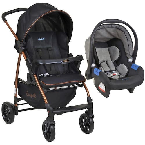 Carrinho De Bebê Ecco Preto Cobre E Bebê Conforto Gray