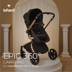 -Carrinho robusto e imponente com acabamento premium -Uso desde o nascimento até 15 kg ou aproximadamente 4 anos -Giro 360° para reverter o assento de forma surpreendentemente fácil e rápida, sem a necessidade de retirar a criança (atenção: utilize o assento moisés virado na direção do condutor até pelo menos os 6 meses do bebê) -Assento com ajuste prático com apenas uma das mãos para usar na função moisés ou função passeio -Ajuste de Posição com 3 alturas diferentes para o bebê que já sabe sentar -Capota ampla com aba de sol, proteção UV50+ e janela peek-a-boo -Amplo cesto com fechamento para levar objetos e pertences do bebê ou dos pais de modo protegido e discreto -Cinto de 5 pontos com protetores acolchoados ajustáveis em altura e largura -Barra frontal com abertura para facilitar colocar e retirar o bebê -Manopla telescópica ajustável em altura para os pais conduzirem o carrinho com mais conforto -Rodas grandes com amortecedores nas 4 rodas, giro 360° com opção de trava nas rodas dianteiras -Freio centralizado de fácil acionamento -Fechamento da estrutura independente do assento para um modo mais compacto